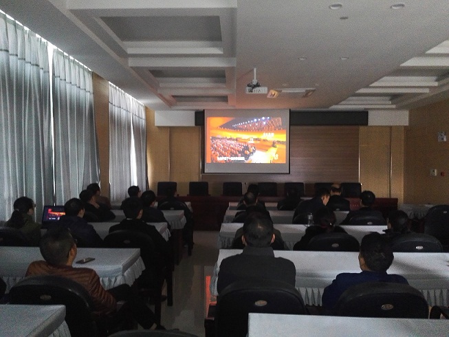 2018年11月13日下午集團公司黨總支組織下屬四個支部全體黨員在11樓會議室集中收看《榜樣3》專題節目