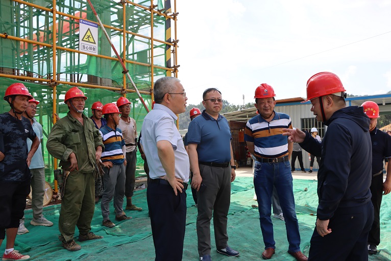 在黃山市南部城鎮(zhèn)群水務(wù)調(diào)度中心項(xiàng)目、黃山生豬定點(diǎn)屠宰加工及配套設(shè)施項(xiàng)目及配套冷鏈項(xiàng)目施工現(xiàn)場,城投集團(tuán)總裁黃世穩(wěn)、黨委副書記汪蓉、副總裁朱愛民等一行將慰問品送到一線職工手中,并和大家親切交談,細(xì)致了解大家的生活工作情況,總裁黃世穩(wěn)叮囑要注意勞逸結(jié)合,合理安排作息時(shí)間,做好防暑降溫工作,確保實(shí)現(xiàn)安全生產(chǎn)。
