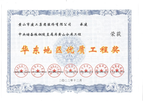 由黃山建工集團(tuán)股份有限公司承建的“中央儲(chǔ)備糧銅陵直屬庫黃山分庫工程”榮獲華東地區(qū)各省建筑業(yè)協(xié)會(huì)聯(lián)合頒發(fā)的“華東地區(qū)優(yōu)質(zhì)工程獎(jiǎng)”。