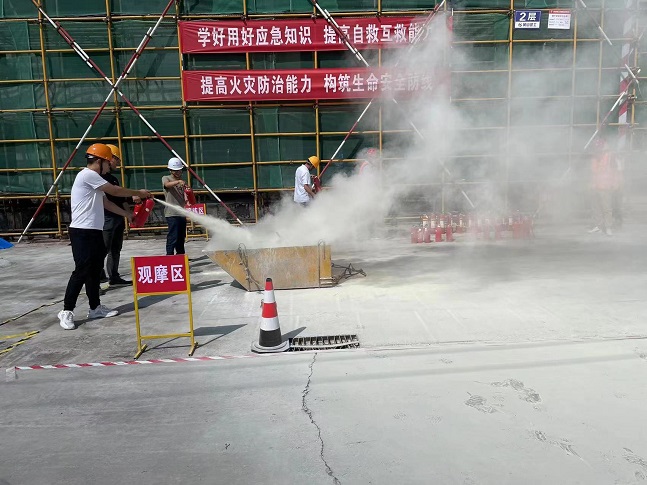 2023年6月是全國第22個(gè)“安全生產(chǎn)月”,為深入貫徹落實(shí)習(xí)近平總書記關(guān)于安全生產(chǎn)重要論述,嚴(yán)格落實(shí)集團(tuán)公司關(guān)于安全生產(chǎn)各項(xiàng)規(guī)定,進(jìn)一步強(qiáng)化公司整體消防應(yīng)急救援綜合能力。6月8日下午,集團(tuán)公司在齊云府六期項(xiàng)目開展“人人講安全、個(gè)個(gè)會(huì)應(yīng)急”消防安全應(yīng)急演練活動(dòng)。項(xiàng)目安全員開展消防器材的使用、撲救初起火災(zāi)疏散逃生等消防安全常識(shí)的培訓(xùn)。以通俗易懂的方式,深刻警示全體員工要提高對(duì)消防安全的重視。