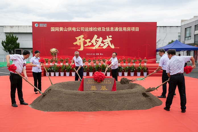 7月6日上午,國網(wǎng)黃山供電公司運(yùn)維檢修及信息通用房項(xiàng)目奠基儀式在項(xiàng)目場地舉行,國網(wǎng)黃山供電公司總經(jīng)理毛峰、黃山建工集團(tuán)董事長項(xiàng)端陽、設(shè)計(jì)監(jiān)理單位相關(guān)負(fù)責(zé)人和施工班組代表出席奠基儀式。